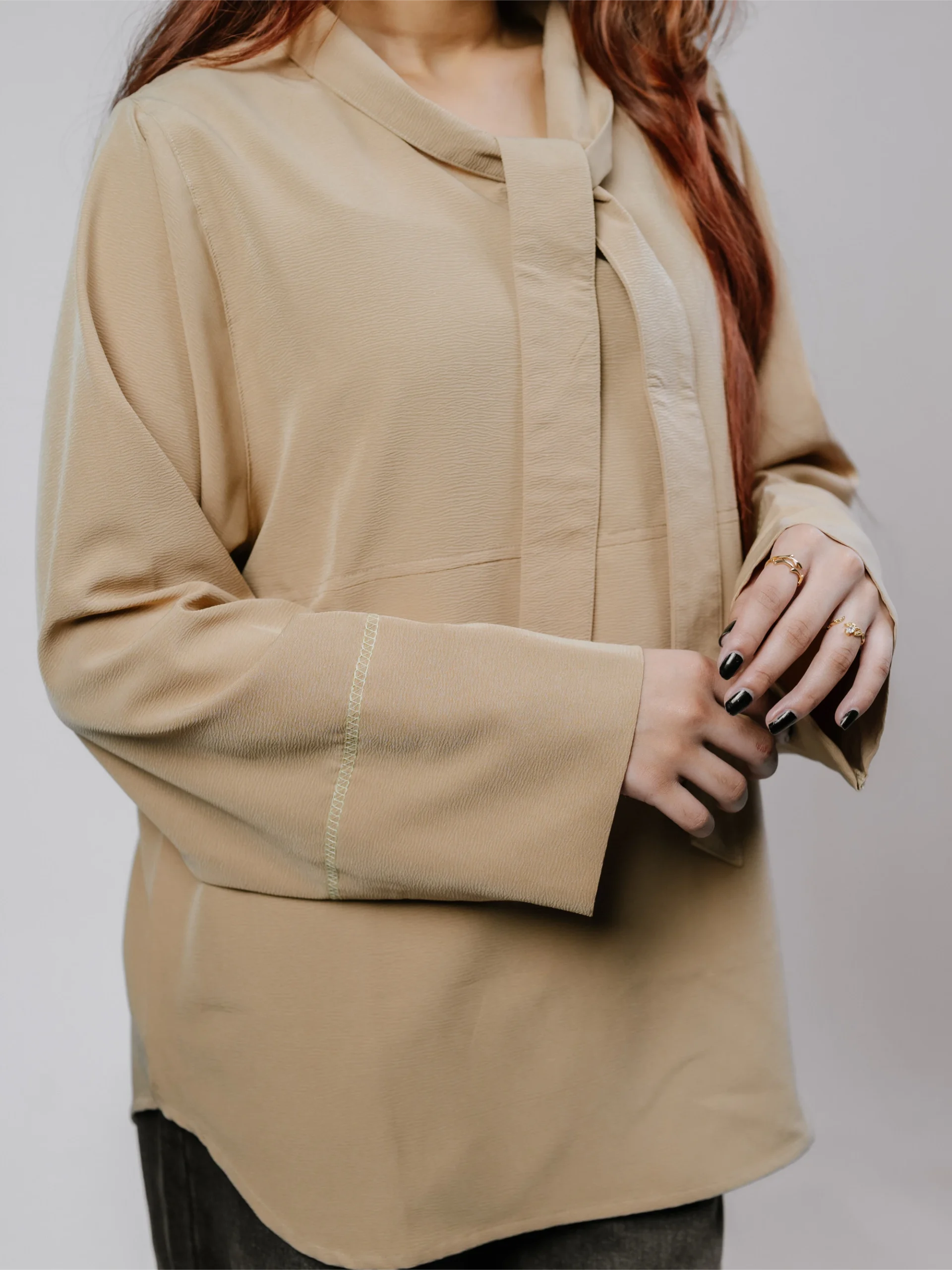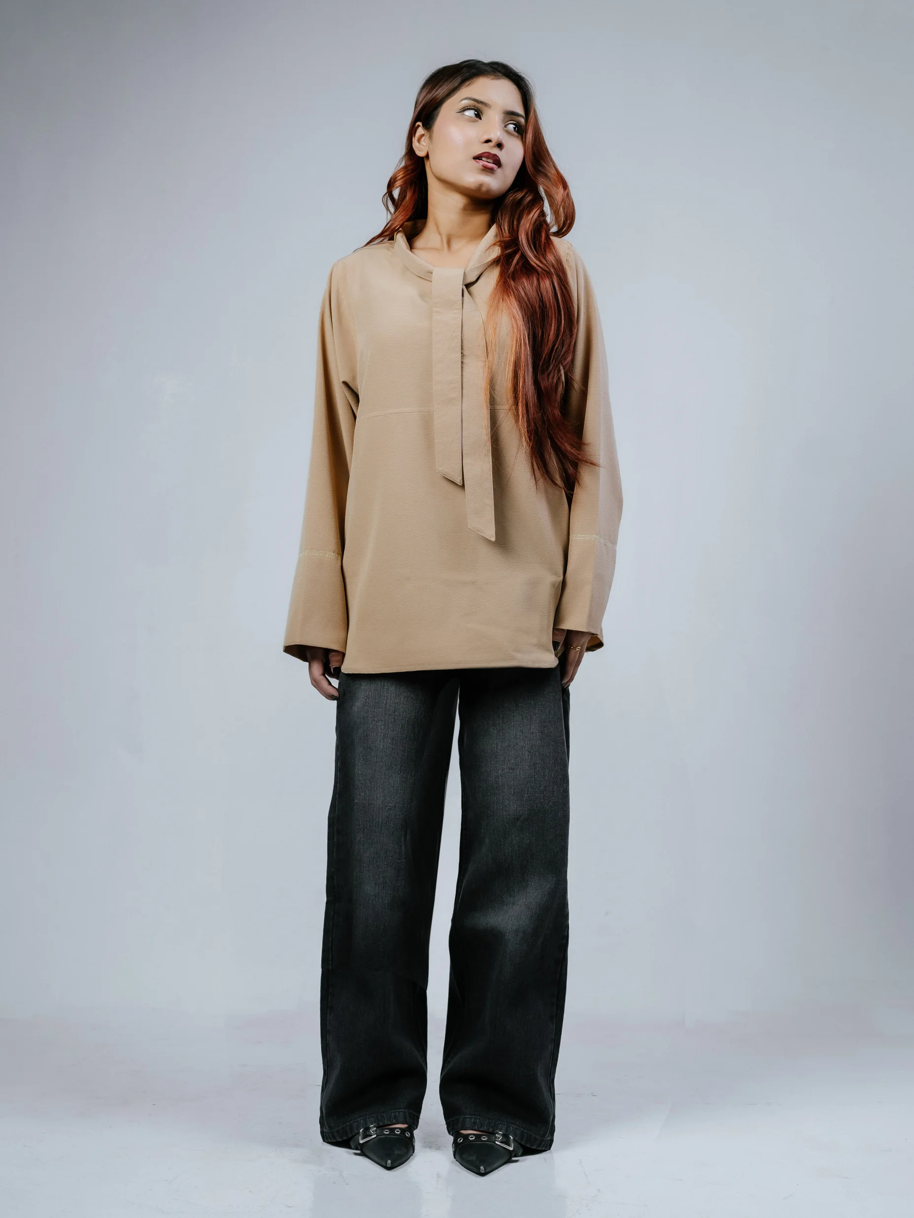 Beige tunic made for ultimate comfort and confidence at your festive events with stylish bow. It gives a vibrant casual look to use everywhere with extra confidence: social events, outings, the office, and effortless movements.